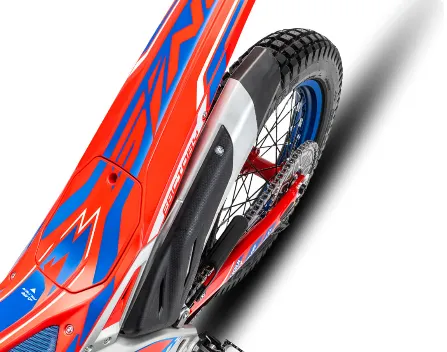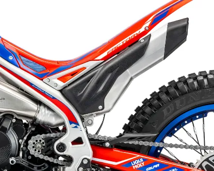 Precision-engineered components include blue anodized CNC-machined triple clamps and premium BrakTec brake and clutch master cylinders. Paired with self-cleaning Galfer racing discs, the setup ensures maximum braking performance. The bike also features blue anodized Excel rims with Dunlop Geomax Trial tires, while black CNC-machined Ergal footpegs provide optimal grip and stability.